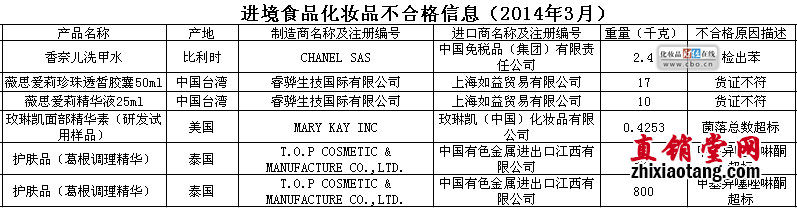 昨天,国家质检总局公布3月份进境不合格食品、化妆品信息显示,香奈儿、玫琳凯等产品被检测不合格。