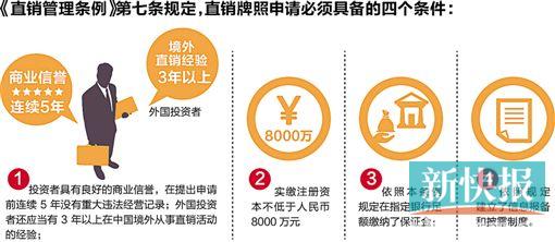 ■《直销管理条例》第七条规定,直销牌照申请必须具备的四个条件