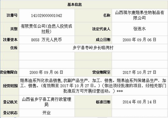 公司基本概况:山西琪尔康翅果生物制品有限公司成立于2000年3月,公司拥有翅果油树三大科技示范园区、三大经济林基地、年生产能力300吨的CO2超临界萃取生产线、全自动软胶囊生产线、北京晋嘉琪尔康生物资源研究中心及北京销售服务总公司,是集科技研发、经济林建设、生产加工、销售服务于一体的高新技术企业。是煤焦企业转型发展的大胆尝试。