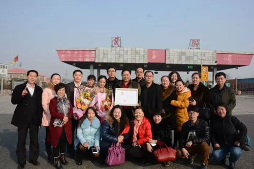 华林公司员工、经销商代表与直销经营许可证在集团大门口合影留念