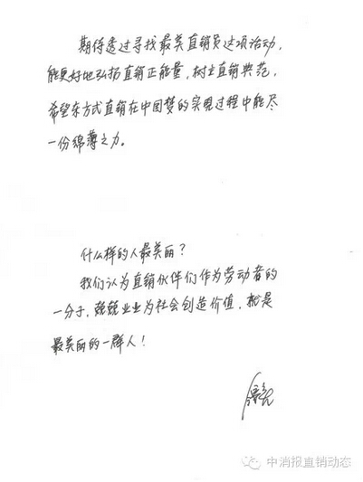 首届(2015年度)寻找最美直销员活动,由中国消费者报社、中国消费网主办。根据活动安排,主办单位特邀请部分直销企业主要负责人组成评审委员会。中国消费者报社将通过中消报直销动态微信公众订阅号(搜微信公众号ccn315ds加关注)、中国消费网等,陆续对各位评委一一进行介绍。