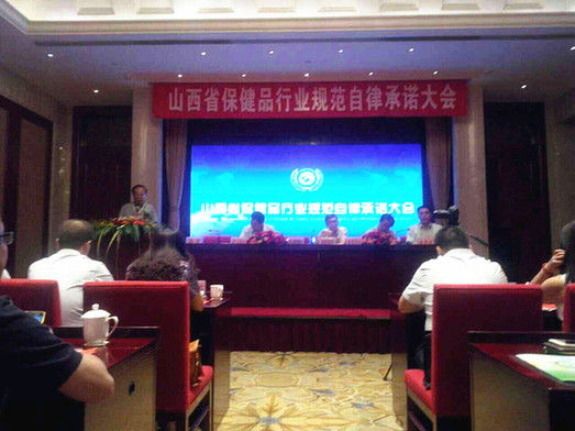 6月6日,山西省保健行业规范自律承诺大会在太原并州饭店召开。出席此次会议的有太原市工商局副局长太原市消费者协会会长郭建新、山西省药监局保化处副处长解福成、太原市药监局保化处处长刘俊青、山西省保健品协会秘书长郭斐、山西省保健品协会养生保健委员会主任安雳宏。山西各地区的会员单位和部分企业的法人代表参加了此次会议。会上,省工商局、药监局及保健品协会主要负责人做了重要讲话。协会主要负责人及会员单位在会上就行业规范自律做了郑重承诺。