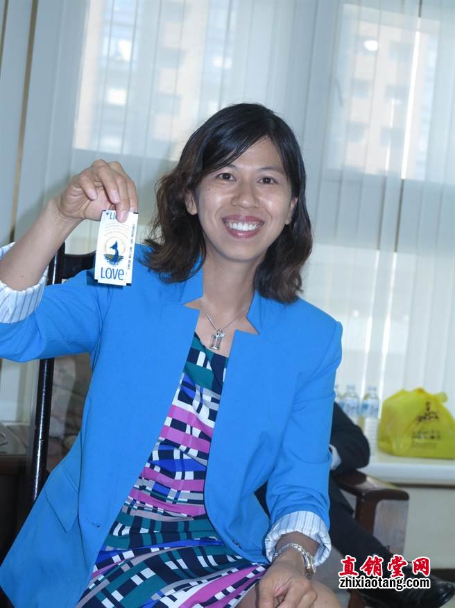 富绿安全球总裁黄英琪手拿着该公司的海藻营养舌下含片表示,