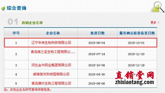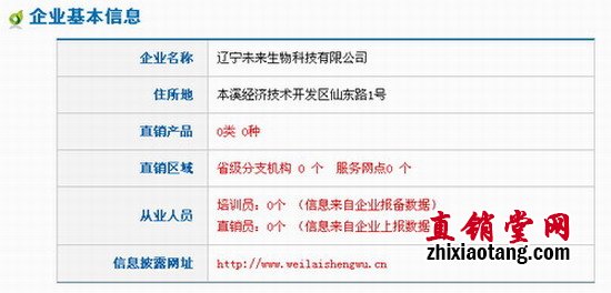 12月1日,商务部直销行业管理信息系统发布辽宁未来生物科技有限公司获得直销经营许可证。信息显示,未来生物是于2015年6月4日获得批准,12月1日备案公示。企业基本信息中,直销产品、直销区域、从业人员均显示为0。