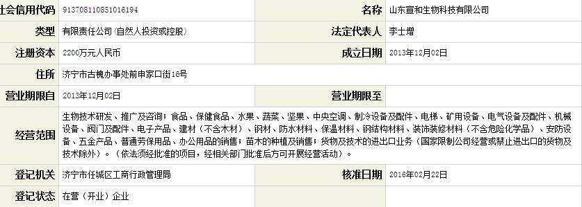 本网编辑查询到该公司注册资金2000万,法人是李士增,公司成立于2013年12月份。