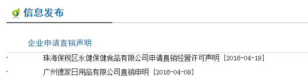 本网编辑在商务部网站发现,珠海保税区永健保健食品有限公司申请直销经营许可声明。