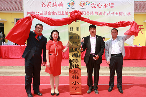 “撒播美丽·奉献健康”——尚赫品牌带着无穷的魅力、“心系慈善·爱心永续”——尚赫公益基金会带着永恒的理念于2016年4月27日,继续沿着尚赫公益长河翻腾出爱心浪涛——第43所尚赫公益小学——辽宁省辽阳县隆昌镇尚赫张玉梅小学成功举行揭牌仪式。1100余名尚赫爱心伙伴在慈善奉献中见证了尚赫品牌的无疆大爱。