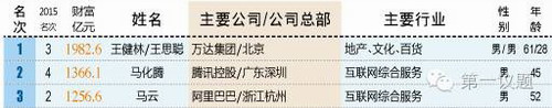 榜单前三没有任何悬念,分别是你们的老公王思聪和他的爸爸王健林、QQ之父马化腾,以及承包了你们钱包的马云。