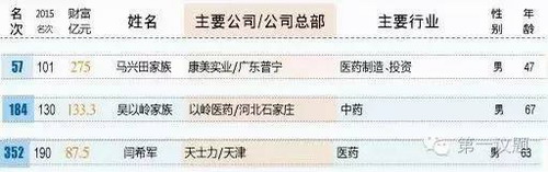 当然啦,议题君心里还是时刻惦记着咱们直销圈的。三家直销企业的BOSS上榜,他们分别是康美实业的马兴田家族、以岭药业的吴以岭家族、天士力的闫希军。