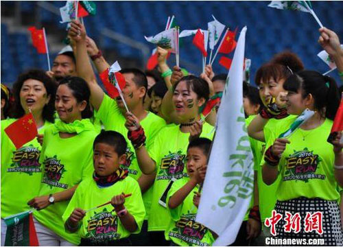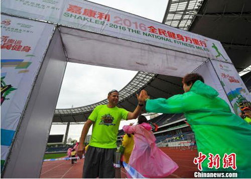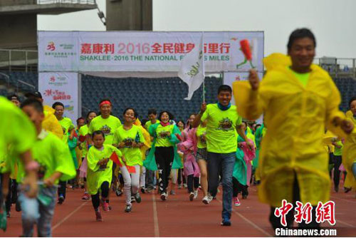 7月7日,嘉康利2016全民健身万里行活动登陆乌鲁木齐,来自该市各行各业的300多位“跑友”与从美国远道而来的奥运会现代五项全能选手伊莱·柏麦在淅淅沥沥的小雨中轻松开跑,传递运动健康理念。