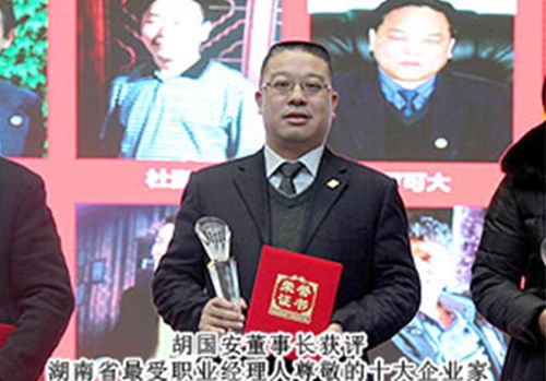 2013年1月,在2012湖南省职业经理人大会暨湖南首届优秀职业经理人评选颁奖典礼上,绿之韵集团董事长胡国安获评2012年度湖南省最受职业经理人尊敬的十大企业家