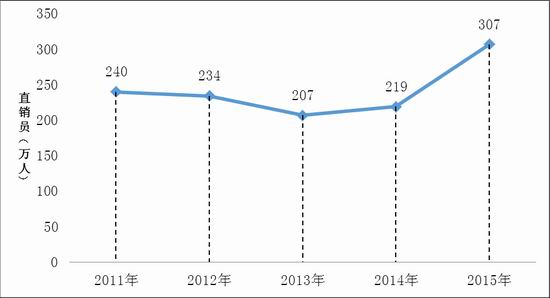 图6:2011-2015年直销员人数