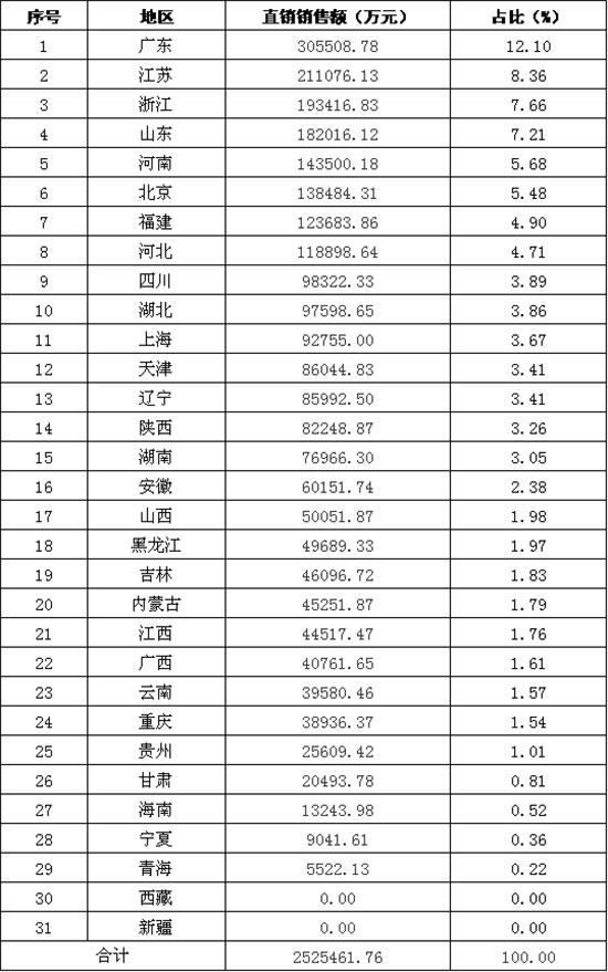 各地区直销销售额排名
