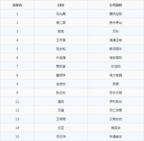 中国百佳CEO榜单