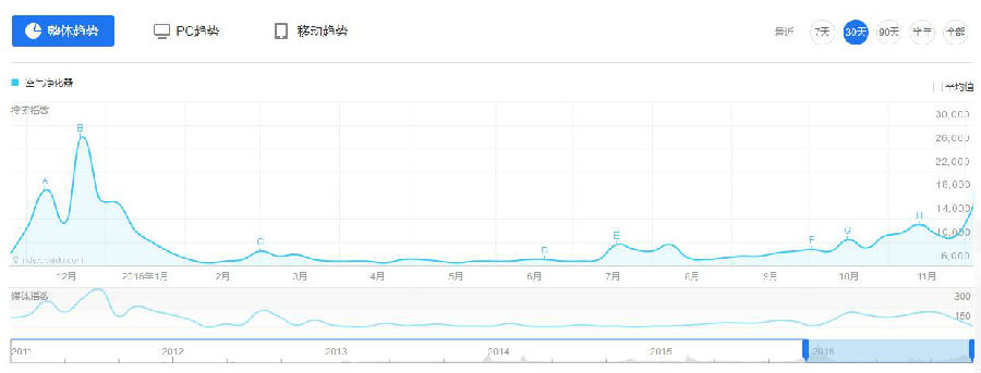 图为电商采购大数据平台,从中我们发现空气净化器的销售量主要集中在2015年12月份至2016年1月,而在2016年的年末也就是现在,达到了历史性的巅峰,这是为什么呢?因为雾霾呀!这是消费者选购空气净化器的不可抗因素,我们都知道每年秋冬雾霾的高发季,所以这个时候全国人民都开始屯新鲜空气了,也就迎来了空净市场的爆发期。