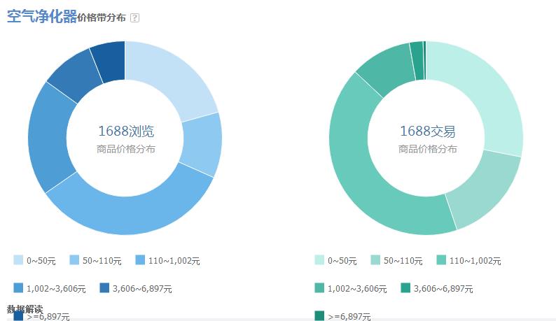 从电商大数据平台可以看出,消费者对低价位空气净化器表现出了浓厚的兴趣,占比最高的为110-1002价格段,占市场42%的份额;而110元以下价格段的空气净化器紧随其后,占比为28%。在电商大数据平台搜索110元-1002价格段空气净化器的占比达34%。这其中不乏很多知名品牌,既有一些家电老品牌,比如飞利浦、夏普、亚都、TCL等等,也有一些互联网代表品牌,如小米等等。