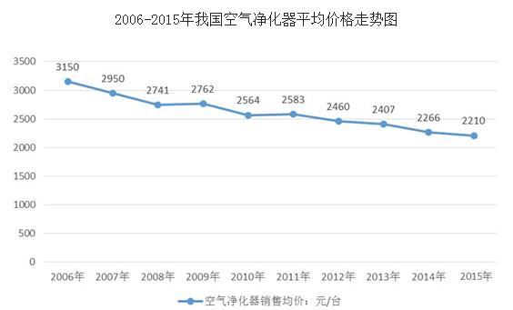 据监测:近年来国内空气净化器销售均价呈现震荡下滑态势,2014年国内空气净化器销售均价为2266元/台,2015年平均售价在2210元/台。