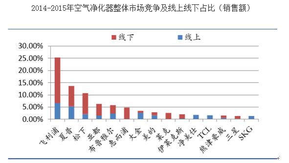 同期线上市场数据显示,飞利浦的市场份额为18.5%,雄踞榜首;布鲁雅尔以12.9%位居次席;三星空气净化器市场份额达到9.9%,紧随其后;霍尼韦尔与夏普分居四、五位。这其中,三星的销量增长速度最为迅猛,同比份额增长达到了8.7%,潜力十足。而线下市场份额除亚都杀出重围外,前五名的其他四位分别由飞利浦、A.O.史密斯、三星与夏普占据。整体来讲,本土品牌表现有些不尽如人意。