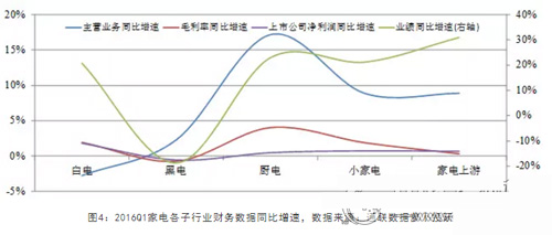 厨电以及小家电的业绩、企业主营业务同比增速都大于传统的白电、黑电产品,毛利率增速也远远优于黑电。