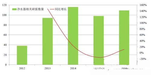 净水器相关的券商研报也呈增长态势(2016年截止到12.10)