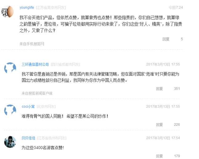 但纵观网络上的各种言论,似乎媒体和网友只是抓住“直销公司”“直销人”这样的由头展开攻击,许多人所质疑的根本重点,仅仅是这群人的“身份”。不妨设想一下,如果这次事件的主体换成某国有大型企业的员工,事情的发展肯定是另一番模样吧?但为什么这3400多人因为有了“直销人员”的身份,他们的爱国行为,也只能挨骂呢?