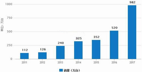 2016年底,影响北方的雾霾进入最严重阶段,一时间,关于雾霾的讨论,再次达到顶点,雾霾经济下,空气净化器等产品更是供不应求。数据显示,2016下半年进入秋冬季节,空气对流性变差,空气质量下降,空气净化器全年销量达到520万台。近年来,空气净化器的销量逐渐递增,从2011年的112万台到2015年的352万台,五年之内增长了214.2%,年复合增长率42.84%。预计到2017年,市场销量将近千万台。