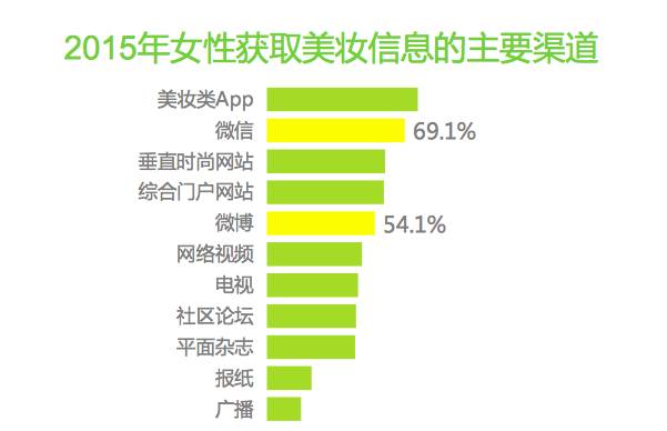 通过上图不难发现,社交网络是女性获取美妆产品的重要渠道来源,占整体的69.1%,但还不是主要的销售渠道。