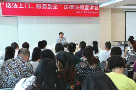 活动最重要的环节中,在成都市工商局直销监管分局执法人员对企业开展的《送法上门服务到企》——法律法规宣讲会现场座无虚席,与会人员一边认真听讲一边做好笔记。执法人员先后从直销行业从业人员的甄别、选择,产品讲解和培训,到直销企业产品销售的退换货期限、制度、维护消费者合法权益等方面,通过典型案例、以案说法,结合直销企业和直销员工作实际,进行了详细的讲解,赢得了听课人员的阵阵掌声。