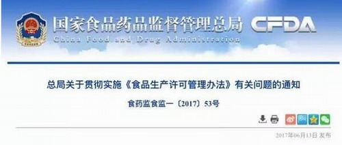 日前,国家食品药品监管总局发出通知,重申和明确各地贯彻实施《食品生产许可管理办法》过程中出现的许可审批、许可审查及证书管理等方面的有关问题,统一工作规范。