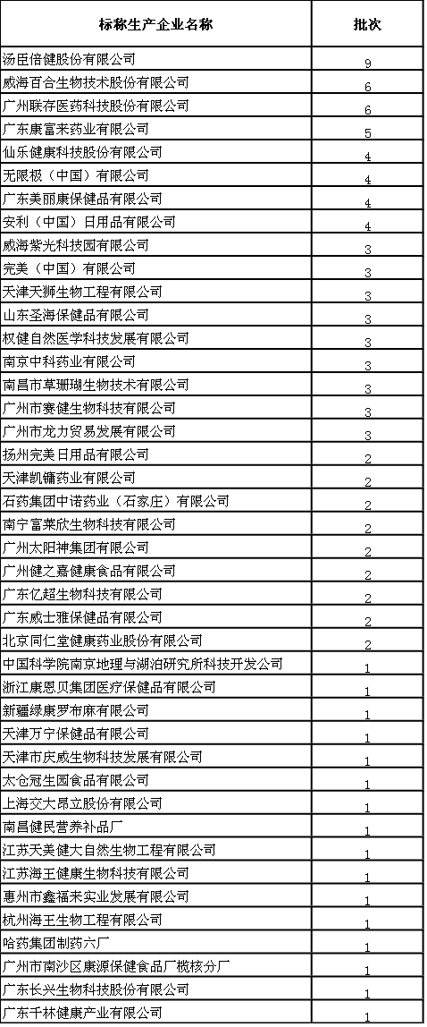保健食品抽检合格企业名单