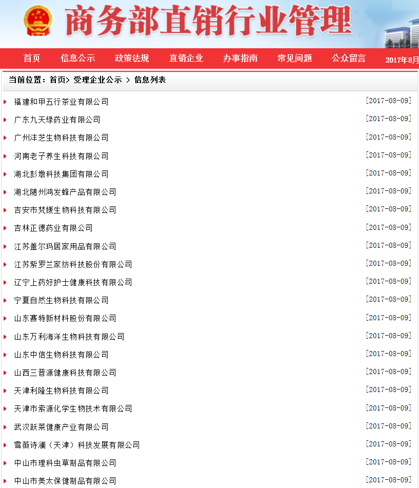 - 10家进军直销尚未发布申请直销声明企业概况