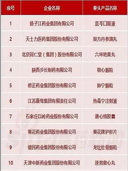 中华民族医药十强品牌企业榜单