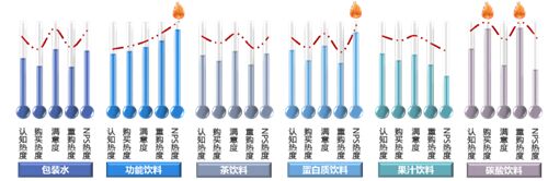 通过“行业热度模型”的五个热度指标(认知热度、购买热度、满意度、重购热度、NPS净推荐热度)的走势,可以对该行业的发展现状和未来走向做出宏观的判断:功能饮料的热度模型呈持续升温状态,认知热度还有提升空间;果汁饮料的热度模型则呈持续降温状态。包装水、茶饮料和蛋白质饮料的走势图均呈W状,这两个子行业发展进入成熟期;蛋白质饮料的NPS热度明显上扬,可视其处于成长期,优良的口碑可以拉升下一轮的认知热度的升温。值得一提的是碳酸饮料,购买热度和重购热度均超过其他类型的饮料,但满意度和NPS热度却瞬间回落,表明消费者一边说着碳酸饮料的种种缺点一边津津有味地举杯畅饮。