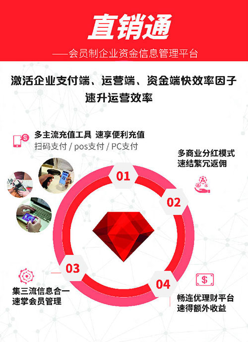 直销通主要是通过实现直销企业内部的信息流、资金流、物流的高度整合,化繁为简,快速提高企业资金运营管理效率等方面,为直销行业提供来自支付的精准服务。