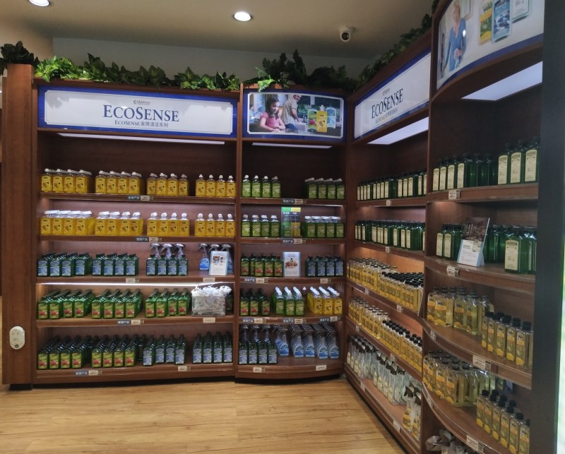 △在位于重庆江北区观音桥的美乐家生活馆里,有经销商告诉本刊记者,美乐家某款家用清洁产品因为已获得相关认证,可以直接喝掉。