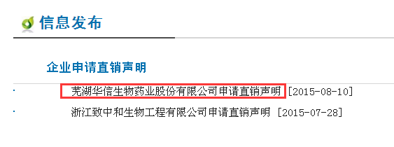 2015年8月10日,商务部直销行业管理信息平台发布了芜湖华信生物药业股份有限公司的申牌声明,成为了继康美来大别山生物科技有限公司后,安徽省的第二家申牌企业。那么,这家传统药企缘何转战直销呢?