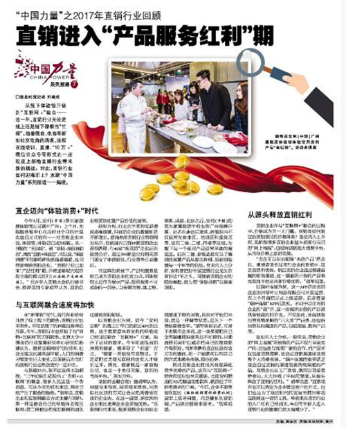 从线下体验馆升级到“互联网+”融合……这一年,直销行业无论是线上还是线下都相当“忙碌”。随着微商、电商等新型社交电商的涌现,远程在线培训、直播、“10万+”微信公众号等形式在一定程度上都给直销行业带来新的挑战。对此,直销行业如何迎难而上?本期“中国力量”系列报道一一揭晓。