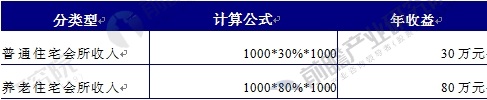 普通住宅与养老住宅的会所收益比较(单位:万元)