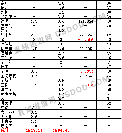 ①本表统计的业绩数据来源于多个渠道的综合,包括各大直销企业自报、上市直销企业公告、以及企业市场经营状况估算等,数据仅供参考!