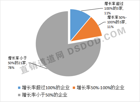 据道道舆情监控室统计,除去2016年业绩不明确的23家企业外,剩余的40家企业中,有13家企业的业绩出现下滑,但也有27家企业的业绩保持着增长态势,整个直销行业仍在飞速发展。
