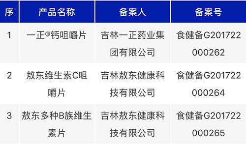 吉林获准3款新品,备案人包括一正药业、吉林敖东。