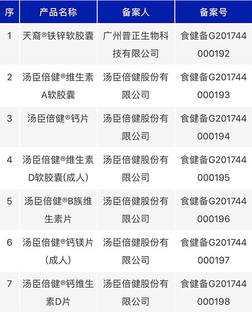 广东获准7款新品,备案人包括普正生物、汤臣倍健。