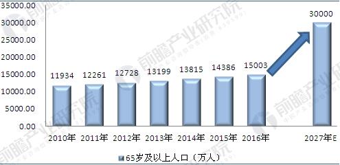2016年末我国65岁及以上老年人总数为1.50亿人,预计2027年超过3亿人,2050年我国老年人口将达到4.8亿。在未来的近半个世纪中,我国老年人口将一直呈迅速增长的发展趋势。庞大的老年人群以及未来数十年不断增长的趋势,决定了老年人消费群体将支撑起一个庞大的老龄产业市场。