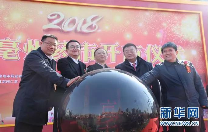 开市仪式上,亳州市委书记汪一光宣布药市开市。亳州市委书记汪一光,市人大常委会主任王玉玺,市政协主席汤涌,康美药业副总裁韩中伟,北京同仁堂(集团)有限责任公司党委书记、董事长梅群,共同启动开市激光球。