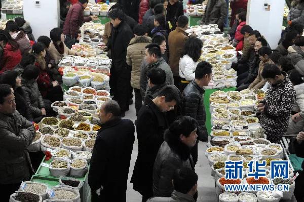在康美(亳州)华佗国际中药城,药商们正在进行中药材交易
