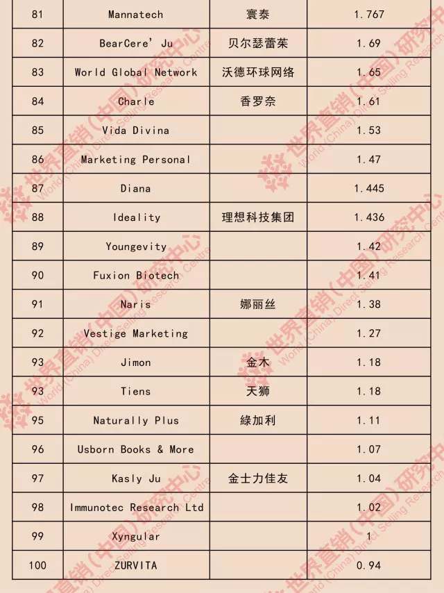 - 2013年全球直销100强发布 隆力奇等10家在华拿牌企
