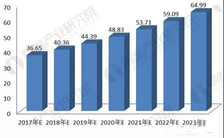 中商联预计2018年社会消费品零售总额增长10.1%左右。保守假设2018-2023年社会消费品零售总额的年均增速保持在10%左右,则到2023年社会消费品零售总额可达约64.99万亿元左右。