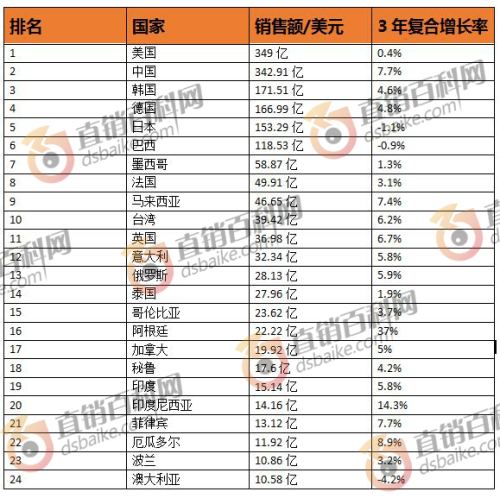 2017全球十亿美元直销市场 中国市场接近美国