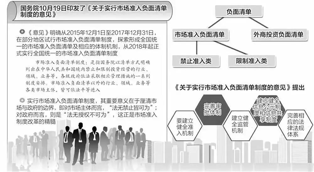 2015年,国务院发布《关于实行市场准入负面清单制度的意见》的国发〔2015〕第55号,对实行市场准入负面清单制度作出了顶层设计,明确了总体要求、主要任务和配套措施。
