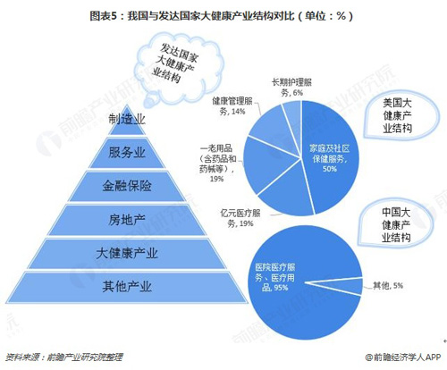 图表5:我国与发达国家大健康产业结构对比(单位:%)